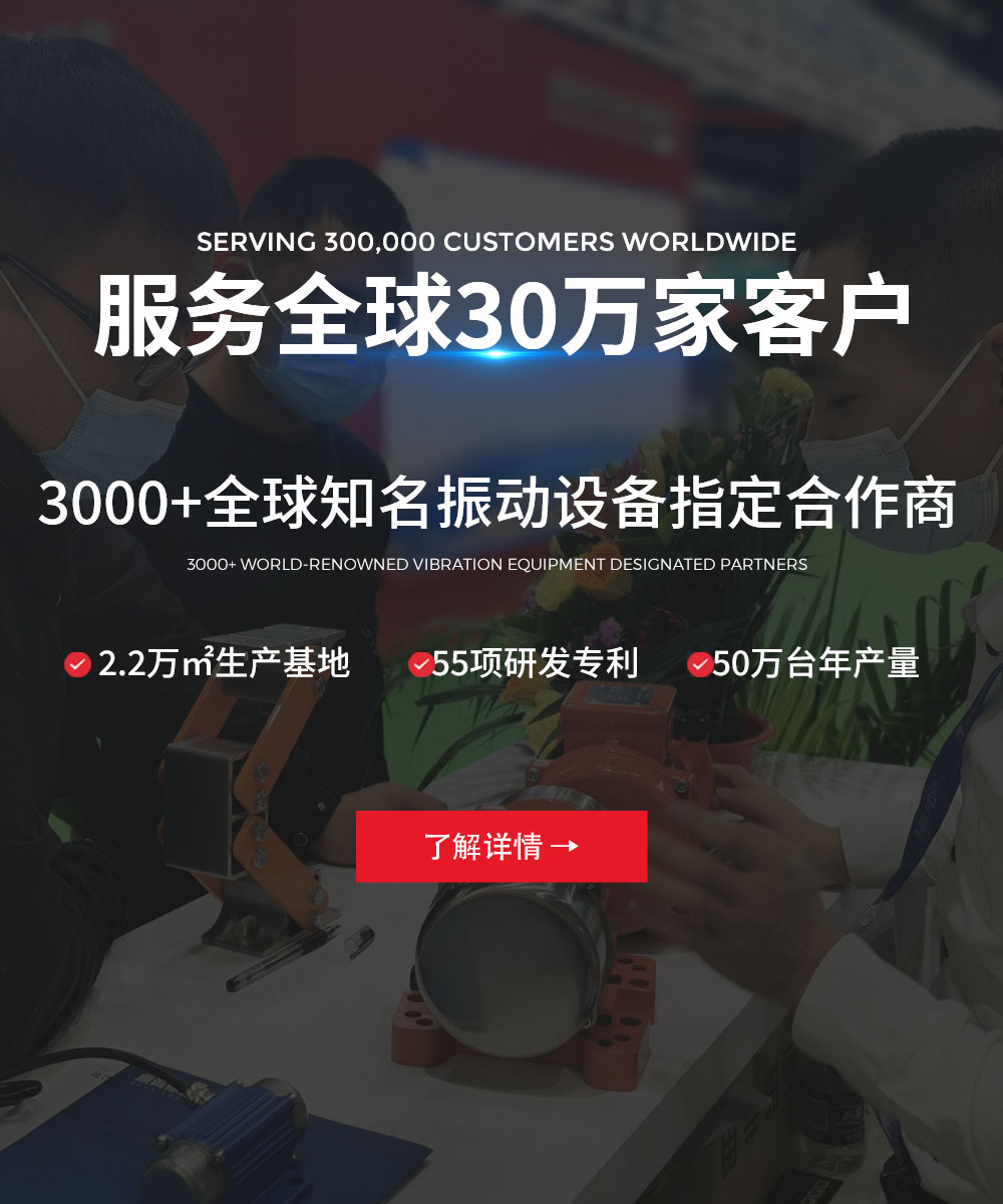 01 30年行業沉淀 · 實力廠家 振動電機設備贏領者